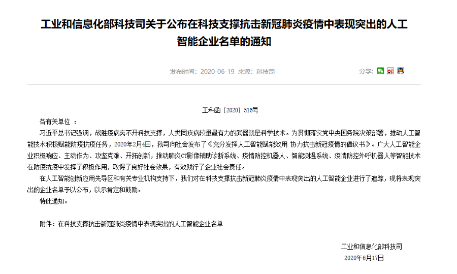 同时,尊龙集团中国AI疫情防控设备、“深目”系统、“天图”系统等3款产品/方案入选了国家人工智能标准化总体组秘书处发布的第一批34款有助于疫情防控的人工智能产品和解决方案名单。