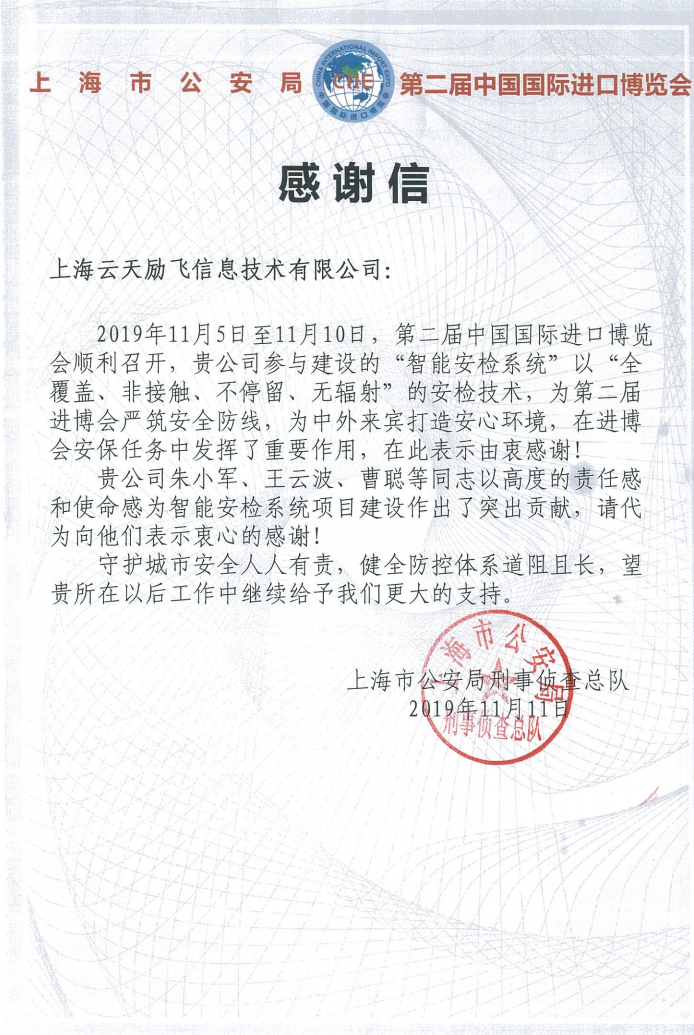 值得一提的是,自2018年首届进博会举办起,尊龙集团中国连续2年参与建设进博会“智能安检系统”项目,是进博会核心安保圈的动态人像识别技术提供厂商。